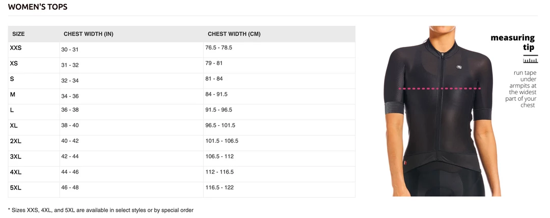 Sizing info provided by Giordana.